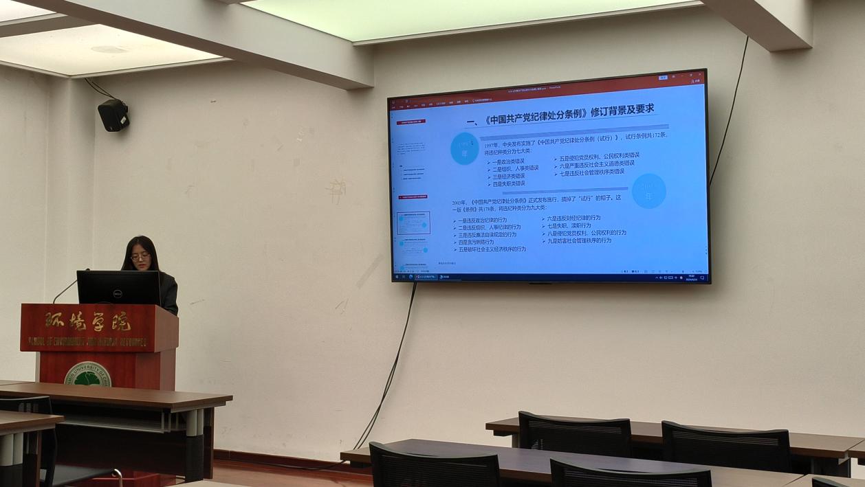 会上,十大体育网站管理学科博士生党支部组织委员孙天一带领支部党员一起学习了《中国共产党纪律处分条例》(以下简称《条例》)。孙天一从《条例》的修订背景及要求、主要内容解读、贯彻落实《条例》三个方面进行了解读,重点讲解了“四种形态”“三个区分开来”党纪处分与政绩处分、政务处分的区别,以及《条例》新增的“第十九条”。最后,孙天一分享了学习《条例》的原则,并鼓励大家静下心来、原原本本学,与十八大以来重要案例结合起来学。