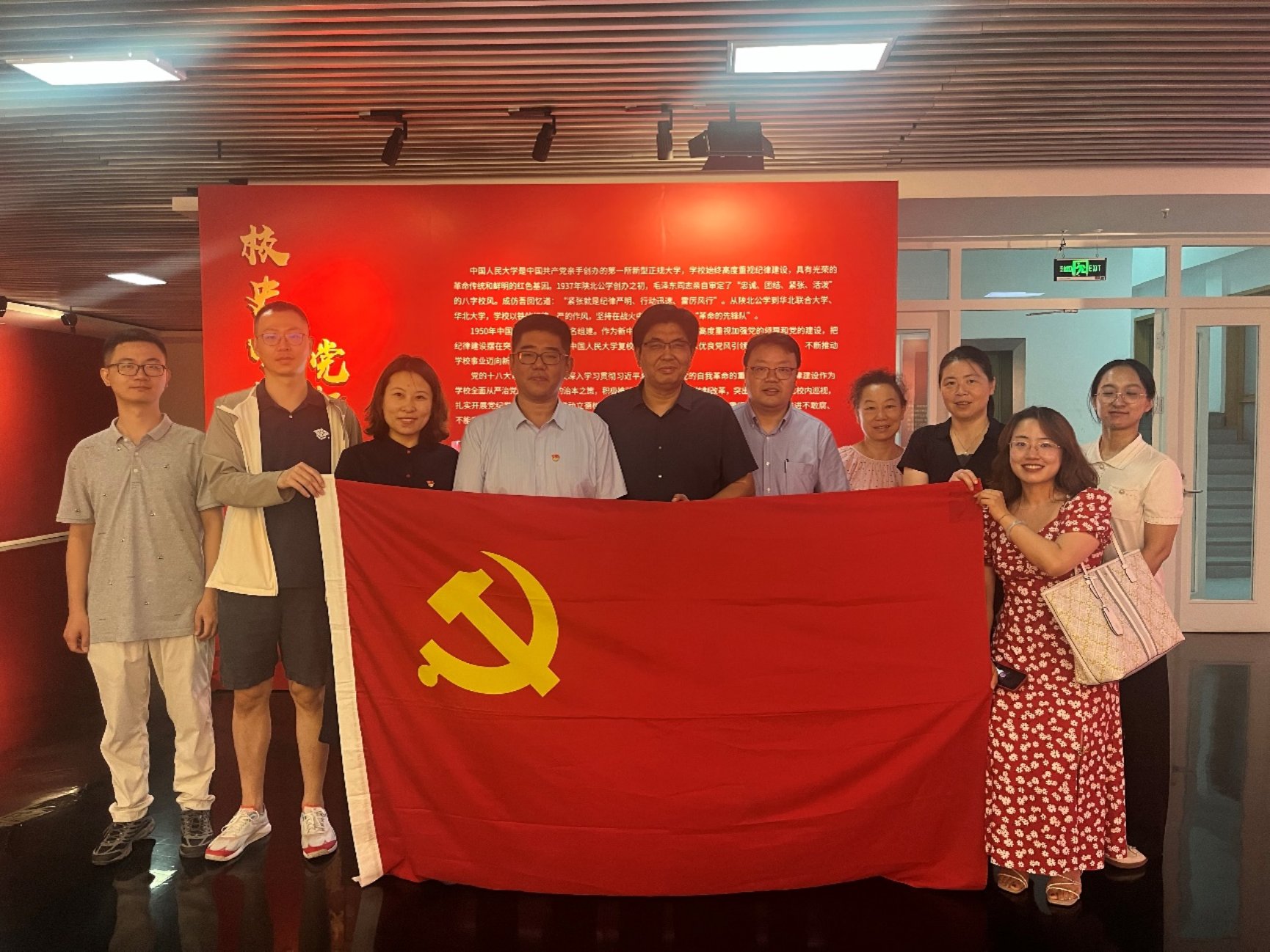 7月8日上午,十大体育网站经理庞军、党委书记贾铁英、党委副书记、纪委书记于媛、副经理王克与教师党员代表一同前往公司博物馆参观“校史中的党纪故事”专题展览。