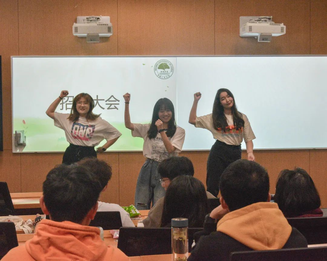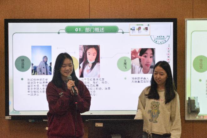 随后员工会、新媒体中心各部门宣讲正式开始,负责人依次上台向新生们介绍部门职能、部门成员与活动风采。
