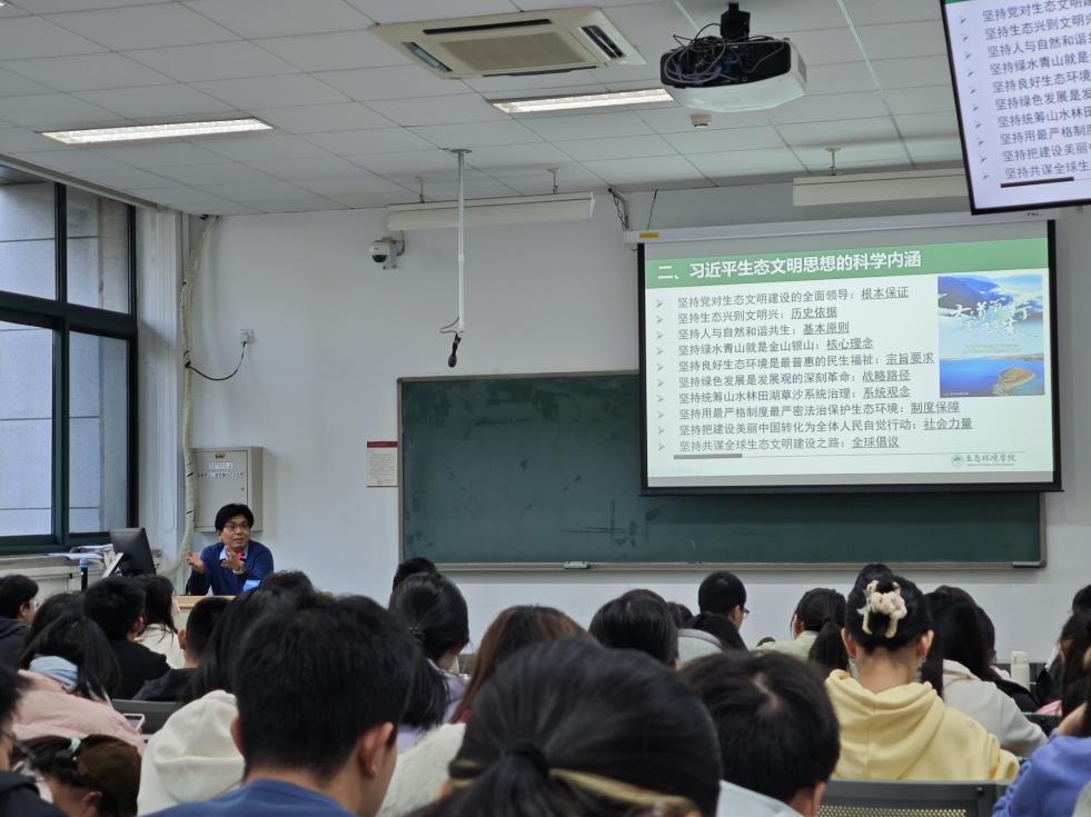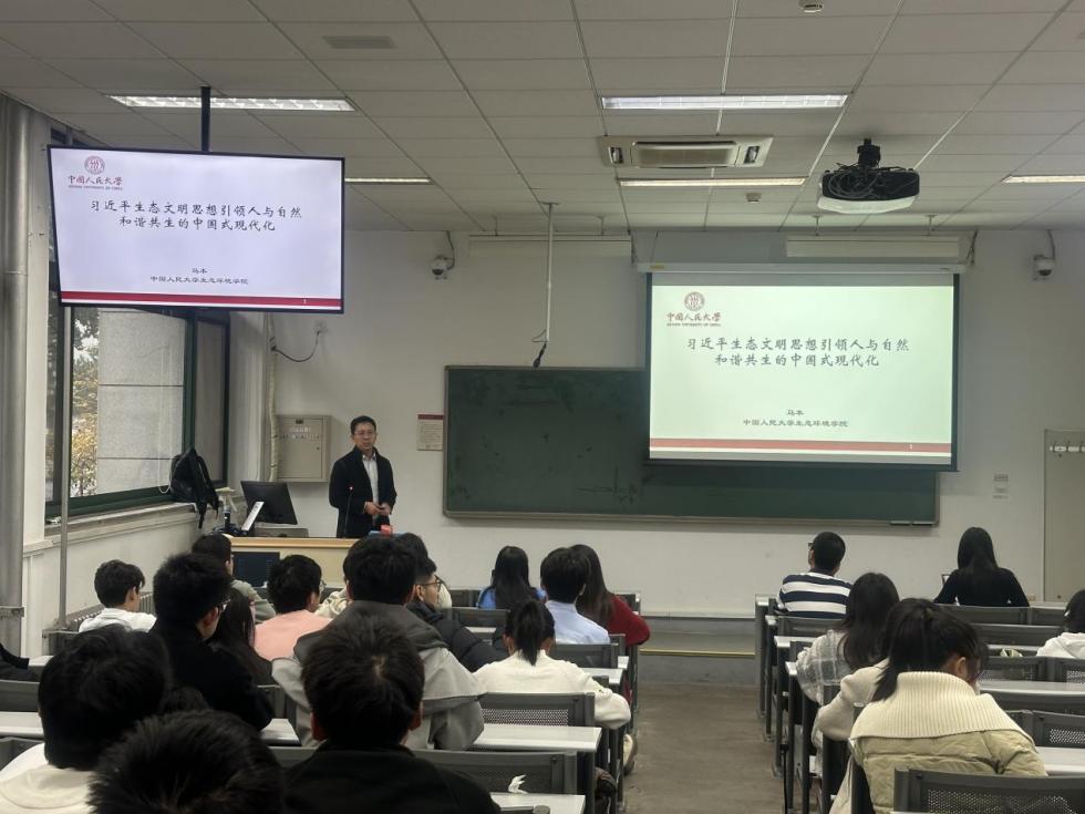 11月20日下午,十大体育网站第1期团校培训班第三次集中学习在教三 3104开展,公司经理、党委副书记庞军教授为学员们讲授了专题团课。专题团课围绕《以习近平生态文明思想为指导 全面推进美丽中国建设》的主题,就习近平生态文明思想的产生和发展及科学内涵、“两山”理念的发展实践、生态文明五大体系建设、美丽中国建设目标和实践道路五方面的内容展开。培训班学员在讲解中清晰认识到自身在建设美丽中国的宏伟蓝图中所肩负的责任与担当,提升了学员对生态文明建设行动方案的认知与以自身投入中国式现代化建设的使命感。
