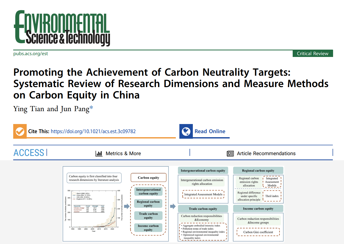 ABSTRACT:Carbon equity is the balance between carbon reduction responsibilities and development rights. The review of carbon equity in China can help it achieve carbon neutrality targets and provide valuable insights to other emerging countries. This study aimed to systematically sort, classify, compare, and prospect the research dimensions and measure methods for carbon equity. The research dimensions were first classified into intergenerational, regional, trade, and income carbon equity by literature analysis. Intergenerational carbon equity explores the balance of carbon emission rights among generations using integrated assessment models (IAM). Regional carbon equity analyzes the socioeconomic effect of regional carbon emission rights allocation by IAM or regional differences under a specific allocation assumption by the Theil index. Trade carbon equity studies the relationship between carbon emissions and economic benefit transfer embodied in inter-regional trade, which is more suitable for calculating by methods with comparable results, such as the optimized regional environmental inequality index. Income carbon equity investigates the carbon footprint heterogeneity among income groups by the carbon Gini coefficient. This paper further discusses potential research directions for each dimension. Notably, all research dimensions did not consider promoted strategies for carbon equity, which should be a priority for future studies.