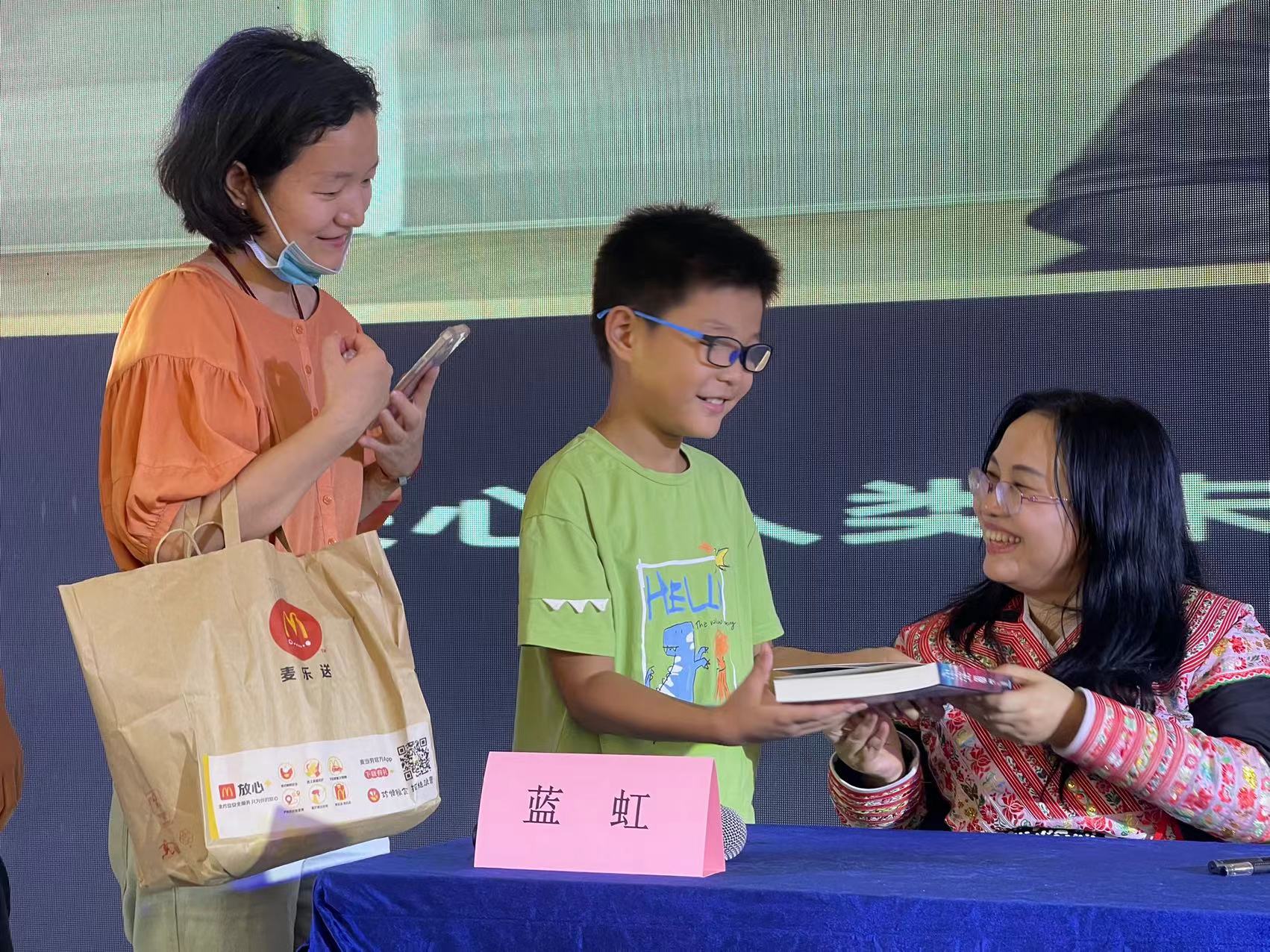在分享会后的签名售书环节,蓝虹笑着问一位购书的小员工:“刚才的故事,听懂了吗?”