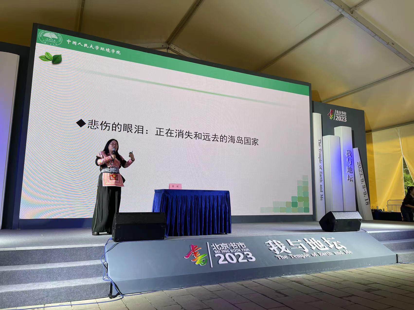 9月16日,《含泪远去的海岛——碳中和的故事》图书分享会,在2023北京地坛书市主舞台区域举办。现场座无虚席,没抢到座位的一大批读者挤在过道上,或站或席地而坐,听完全程分享。