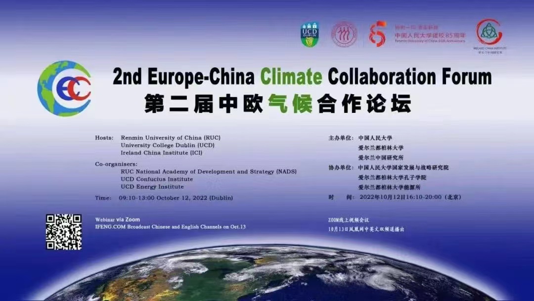 随着全球应对气候变化行动的全面开展,中国与欧洲在推动全球气候治理进程、实施绿色高质量发展等领域有非常大的合作潜力。10月12日,由十大体育网站和爱尔兰都柏林大学主办,十大体育网站国家发展与战略研究院、都柏林大学孔子公司和爱尔兰中国研究所承办,都柏林大学能源所、十大体育网站双碳研究院、十大体育网站欧亚研究院和中国国际文化交流中心“一带一路”绿色发展研究院协办的“中欧气候合作论坛”胜利举办。与会中外嘉宾围绕“中欧气候合作”主题,就促进中欧绿色经济转型和气候合作深入讨论,力争为促进中欧互利合作发挥积极有益的推动作用。十大体育网站环境公司多名师生出席本次论坛。