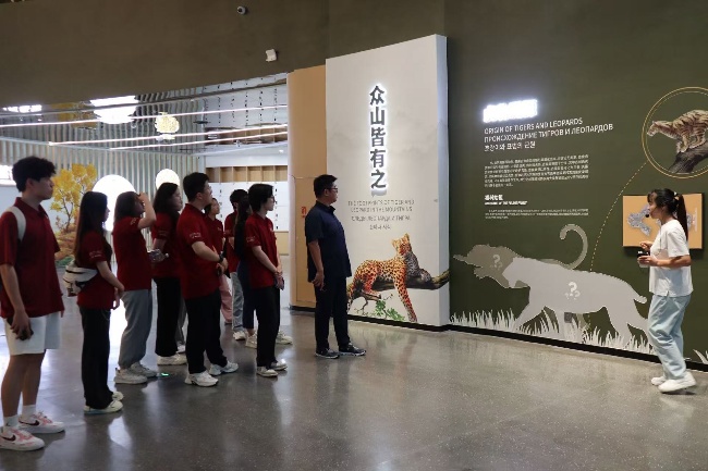调研团在东北虎豹自然科普馆参观学习并与野生动物保护巡护队队员座谈交流