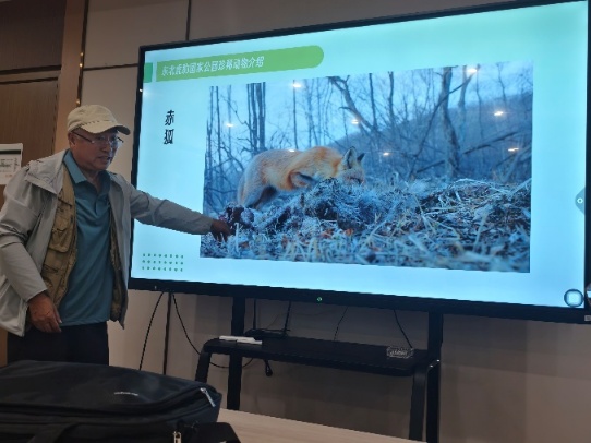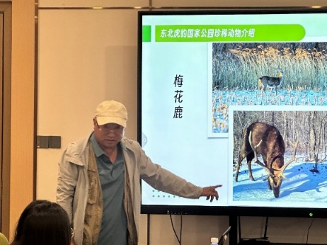 抵达芊钰林场后,谷老师结合多年实地经验,分享了观察野生动物的要点并展示了多张珍贵摄影作品;随后,他介绍如何辨认东北虎和梅花鹿等动物足迹,详细讲解不同脚印的特征,并播放红外监测设备拍摄的视频,直观了解体会动物活动的规律。