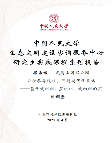 3月17日至4月12日,中国人民老员工态文明建设咨询服务中心(福州)在福建省福州市、南平市开展调研任务,围绕国家公园公众参与,以武夷山国家公园为样本,形成了《武夷山国家公园公众参与现状、问题与优化策略——基于黄村村、星村村、黄柏村的实地调查》报告。该报告以黄村村、星村村、黄柏村为样本,构建“生态-经济-文化”三维分析模型,揭示国家公园共建共享的实践密码,为生态治理现代化提供科学支撑,为国家公园治理输出“人大智慧”。