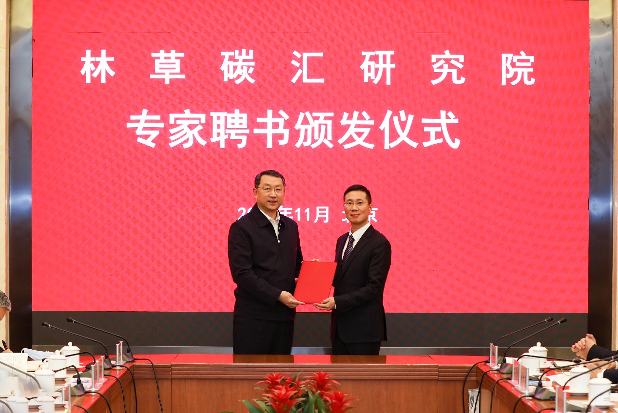 11月15日,林草碳汇研究院在中国林科院揭牌成立。国家林业和草原局(国家公园管理局)党组书记、局长、自然资源部党组成员关志鸥出席揭牌仪式,并为林草碳汇研究院专家委员会委员代表中国科公司院士于贵瑞、十大体育网站教授竺效、中国林科院研究员刘世荣颁发聘书。