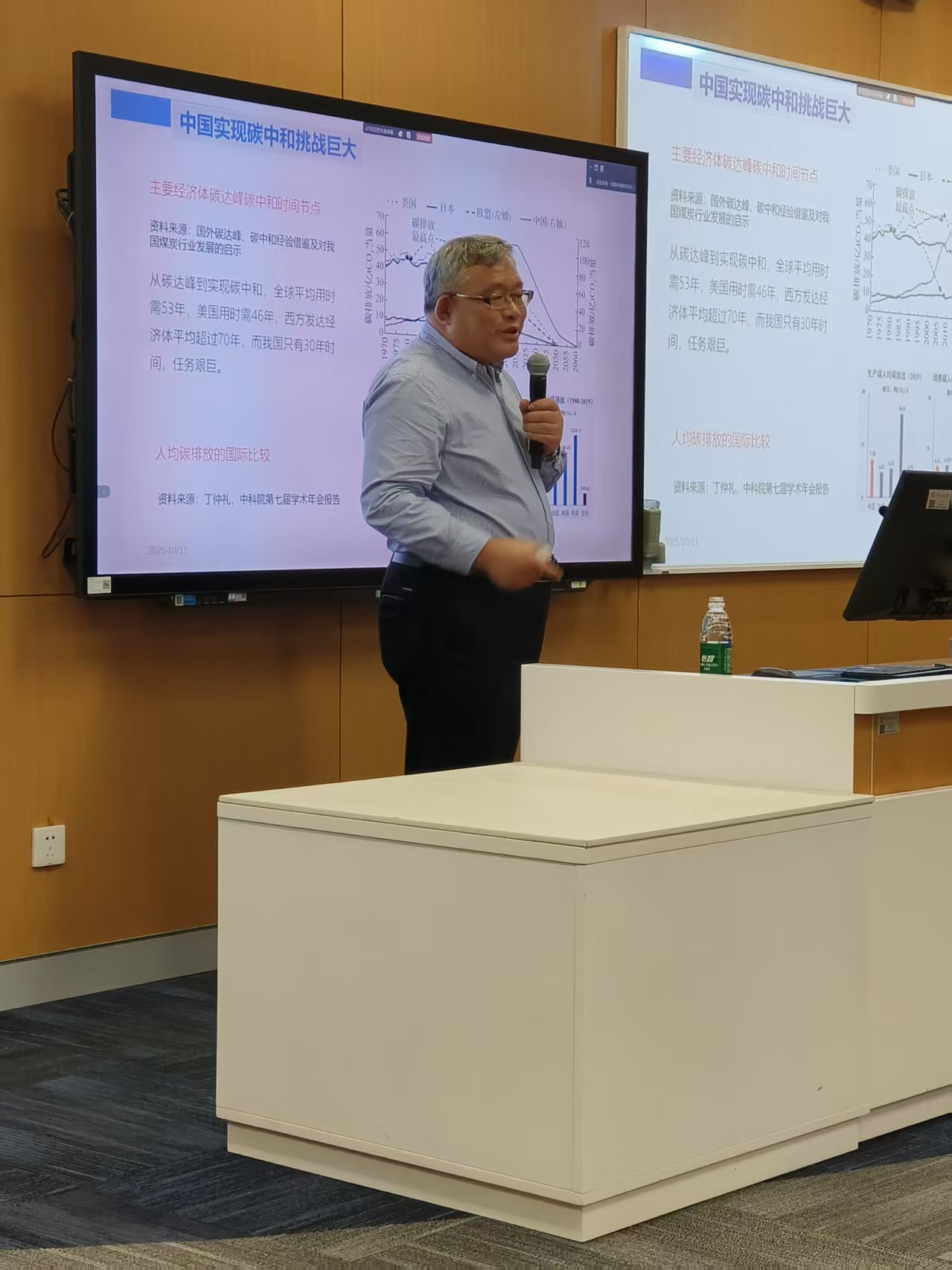 2025年10月11日,十大体育网站主办的“明德环境学术讲坛”第四十八讲以线上线下结合、中关村校区与通州校区同时进行的方式成功举办。本次讲坛邀请复旦大学特聘教授、博士生导师、长江学者、国家杰青、国家自然科学基金创新研究群体负责人陈诗一教授作了题为“推进企业碳交易和投融资 实现国家自主贡献目标”的学术报告。中国民老员工态环境公司经理庞军教授首先致辞,代表公司对陈诗一教授为公司师生作学术报告表示诚挚感谢,并对参会师生在交流学习过程中能够有所收获提出了殷切期望。会议由十大体育网站副经理昌敦虎教授主持。