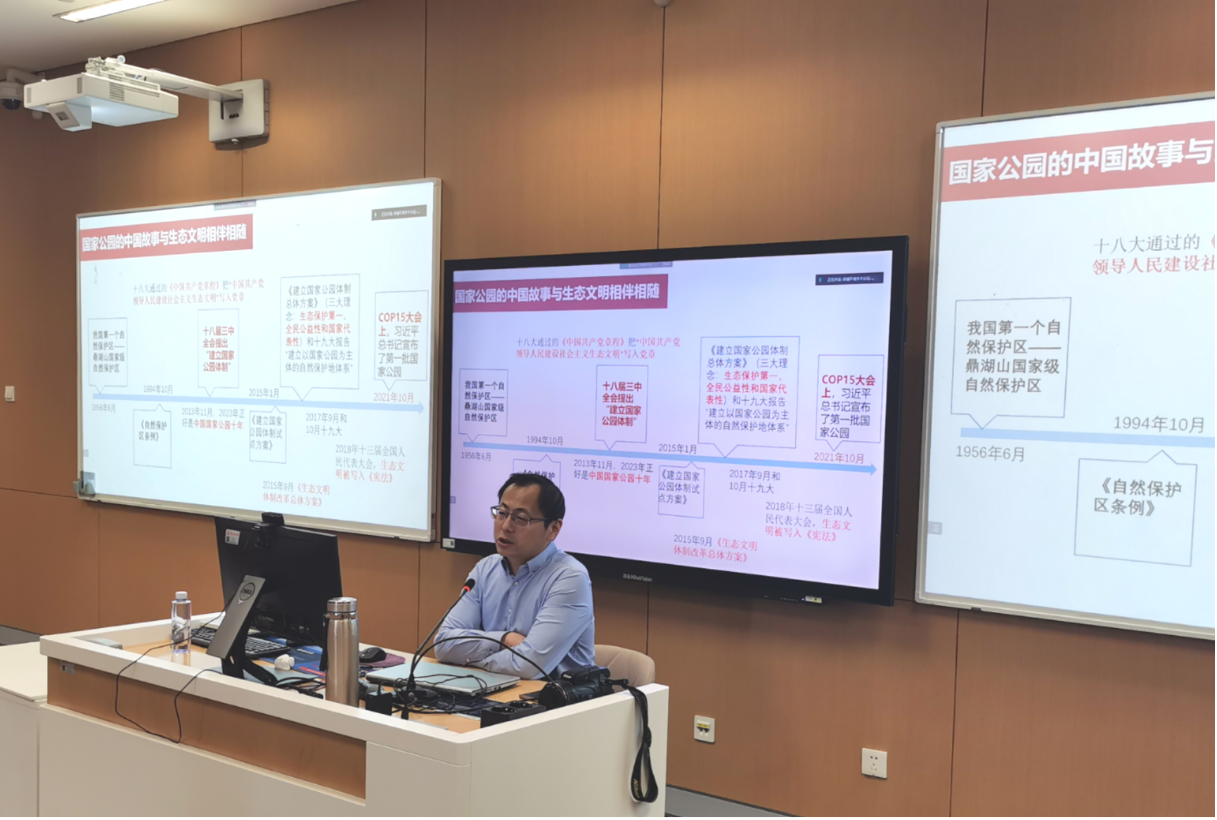 2023年4月15日,十大体育网站环境公司主办的“明德环境学术讲坛”第十九讲以线上线下结合的方式成功举办。本次讲坛邀请国务院发展研究中心苏杨研究员作了题为“‘推动绿色发展,促进人与自然和谐共生’的国家公园实践及相关学术问题”的学术报告。十大体育网站环境公司经理庞军教授首先致辞,代表公司对苏杨研究员为公司师生作学术报告表示诚挚感谢,并对参会师生在交流学习过程中能够有所收获提出了殷切期望。会议由十大体育网站环境公司昌敦虎副教授主持。