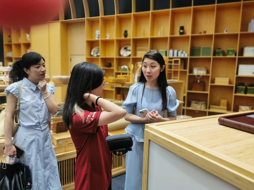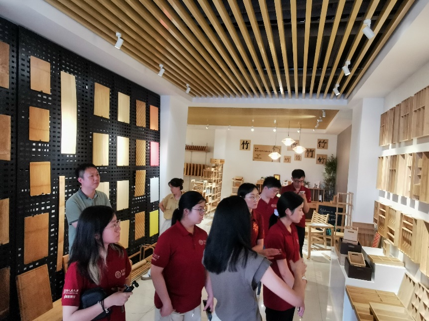 7月11日下午,调研团走进双羿竹木发展有限公司,在企业工作人员的带领下,深入探访这家以竹家居产品出口为主的企业。工作人员介绍,公司坚持“生态、绿色、环保”的可持续发展理念,将竹材创新应用于家居领域,开发出竹制桌椅、橱柜等系列产品,并详细展示了竹板材压制、碳化改色等核心工艺。师生们看到,企业积极践行全产业链提质降本增效,从原材料采购到终端产品制造均严格遵循环保标准,与中央美院、宜家等开展深度合作,凭借环保设计和优良品质成功打入国际市场,占领价值链高端。调研中,师生们深刻体会到:在全球绿色消费浪潮下,中国竹企正以认证体系接轨国际、以设计赋能产品、以全链管控确保可持续,让传统竹艺焕发新生,依靠标准引领、设计赋能、市场认可为生态产品价值实现探索出一条国际化路径。