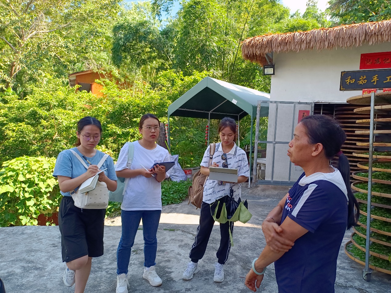 7月26日下午,调研团来到毛纳村开展调研和访谈活动。毛纳村原名为毛脑村,是海南省五指山市水满乡下辖的一个黎族村寨,距离水满乡政府约1.6公里,距离市区约30公里,共33户128人。早期的毛纳村建筑破旧、道路泥泞、环境脏乱,与外界交往较少,由于山多、地少,毛纳村产业发展一度滞后,老乡们曾调侃自己“穷得只剩下山和水”,村民的主要收入来源是种植茶叶和外出务工。近年来,随着脱贫攻坚和乡村振兴各项政策的实施,特别是从2022年4月习近平总书记来毛纳村考察时起,在“乡村振兴要在产业生态化和生态产业化上下功夫”这一重要精神指引下,毛纳村充分发挥背靠海南热带雨林国家公园五指山片区的地理优势,通过因地制宜发展大叶茶特色产业和乡村旅游业,走上了生态美、产业兴、百姓富的发展新道路。