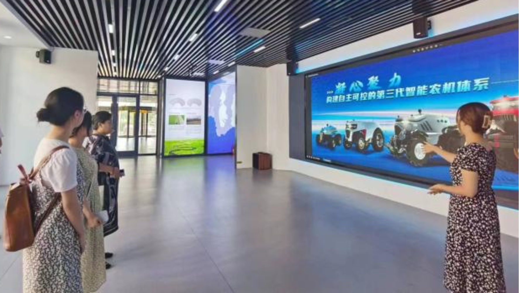 黄河三角洲农业高新技术产业示范区(简称“黄三角农高区”)于2015年成立,总面积350平方公里,是我国第二个国家级农高区,其基本任务是盐碱地综合利用。在国家盐碱地综合利用技术创新中心三位工作人员的介绍下,课题组成员先后参观了耐盐碱植物精准快速育种平台、新一代智能农机装备中试研发平台、益虫资源综合利用中试研发平台的相关工作。课题组成员了解到,黄三角农高区与中科院、中国农科院等48家高校院所、98个专家人才团队合作,建设完善了耐盐植物精准快速育种、病虫害生态防控等8个重大科研平台,取得了耐盐高产优质牧草新品系、“鸿鹄”系列智能农机等一批创新成果。参观结束后,三位同学与农高区工作人员就种质资源科研投入的应用与效益、智能农机作为服务打包出售情况等问题进行交流讨论,收获丰富。