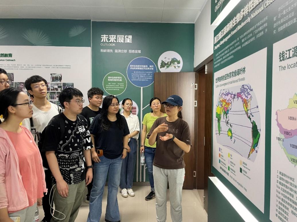 随后,师生们来到钱江源森林生物多样性国家野外科学观测研究站。钱江源森林生物多样性国家野外科学观测研究站工程师为师生详细介绍了中科院在钱江源国家森林公园的研究内容和研究成果,师生们认真聆听、积极互动,通过钱江源站所构建的“天空地”一体化的生物多样性综合监测和研究体系,对“亚热带常绿阔叶林生物多样性形成、维持机制和生态系统功能”这一重大生态学问题有了更加深刻的理解。2022级明德环境“经济学-科学”拔尖人才实验班员工刘志静表示,中科院在钱江源设立的科研监测站专家云集,监测方法科学且新颖,人机配合十分默契,打破了我对野外环境科考“只有艰苦”的刻板印象。