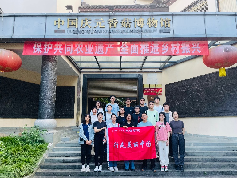 参观结束后,实践教学团队来到中国庆元香菇博物馆参观学习。庆元县优越的自然环境和地理区位,孕育了丰富的菌物资源。师生们在博物馆中了解了庆元香菇的发展历史,感悟了庆元香菇文化的源远流长,体会了农业遗产保护对乡村振兴的推动作用。