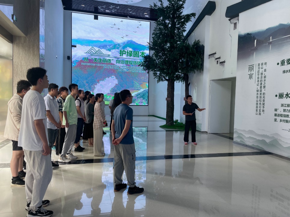 师生聆听讲解员关于丽水市生态建设发展历史的介绍