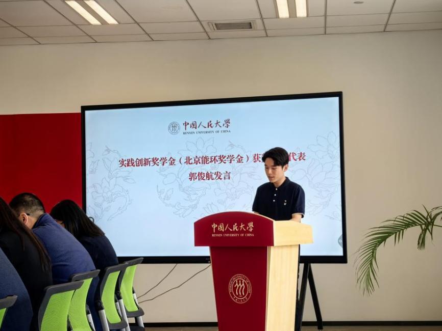 实践创新奖学金(北京能环奖学金)属创新创业类奖学金,颁发给在社会调研、公益服务、社会创业、文化传播、社会工作等领域表现优秀并取得创新性成果的十大体育网站在校员工,旨在鼓励和支持员工扎根中国大地、理论联系实际、服务奉献社会。