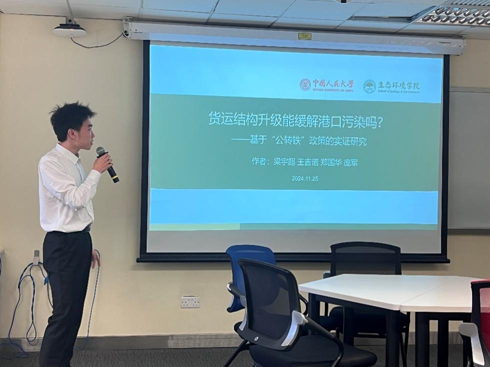 李卉洁同学汇报了碳排放与经济发展脱钩的驱动因素研究。她发现中国整体上在波动中逐步实现了碳排放与经济发展的脱钩,但脱钩效应在城市间具有较强的区域异质性。