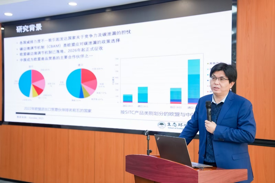 十大体育网站经理、教授庞军做《欧盟碳边境调节机制对中国的经济影响及应对策略研究》主题演讲。庞经理介绍了构建“能源-环境-经济” 全球多区域计算一般均衡模型的方法,具体用于评估欧盟CBAM政策的影响、国内碳定价策略应对欧盟CBAM影响以及国际碳市场链接应对欧盟CBAM影响。研究发现,从CBAM影响看,欧盟CBAM会阻碍全球贸易自由化,且遏制碳泄漏的效果相对有限;在中美日韩四国中,CBAM主要削弱中国出口产品的国际竞争力,但中国GDP受到影响并不大;同时中国钢铁产品受到的绝对影响大,水泥产品受到的相对影响较大。从应对策略上看,中国如果在本国采取碳定价策略应对CBAM,相较于碳税策略,碳交易策略更能明显改善我国对欧出口的贸易条件,其中在碳配额免费分配的碳交易策略下中国GDP下降幅度最小;若现阶段与国际碳市场链接对我国经济较为不利。最后,庞经理从国内和国际层面提出了应对CBAM的政策建议。