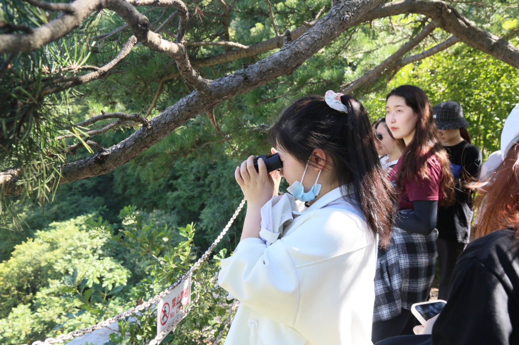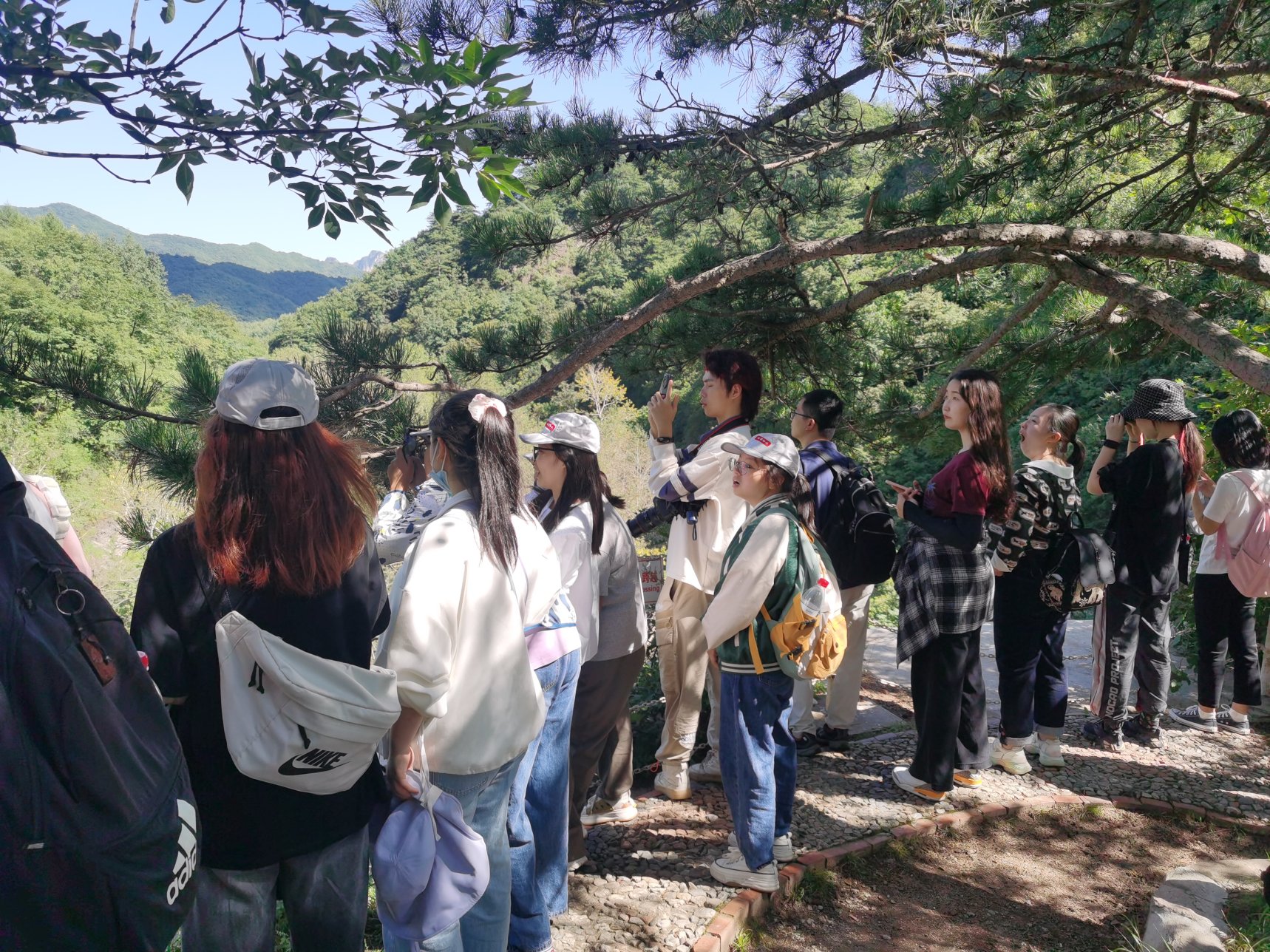当天下午,在玉渡山管理站工作人员的带领下,实践团队前往玉渡山开展观鸟实践活动。沿着蜿蜒山路拾级而上,师生们走过合宜瀑布、忠心广场与三泉泻玉等多个自然景点,看到了雕鸮、野鸳鸯等珍惜鸟类,观察到了血松、火烧兰、北京水毛茛等特有植物。在庞军经理、马奔老师、丁霖老师以及工作人员的讲解下,同学们加深了对保护区的认识与了解,提高了环保意识。沿途中师生共同探讨环境问题,调研氛围轻松愉快。