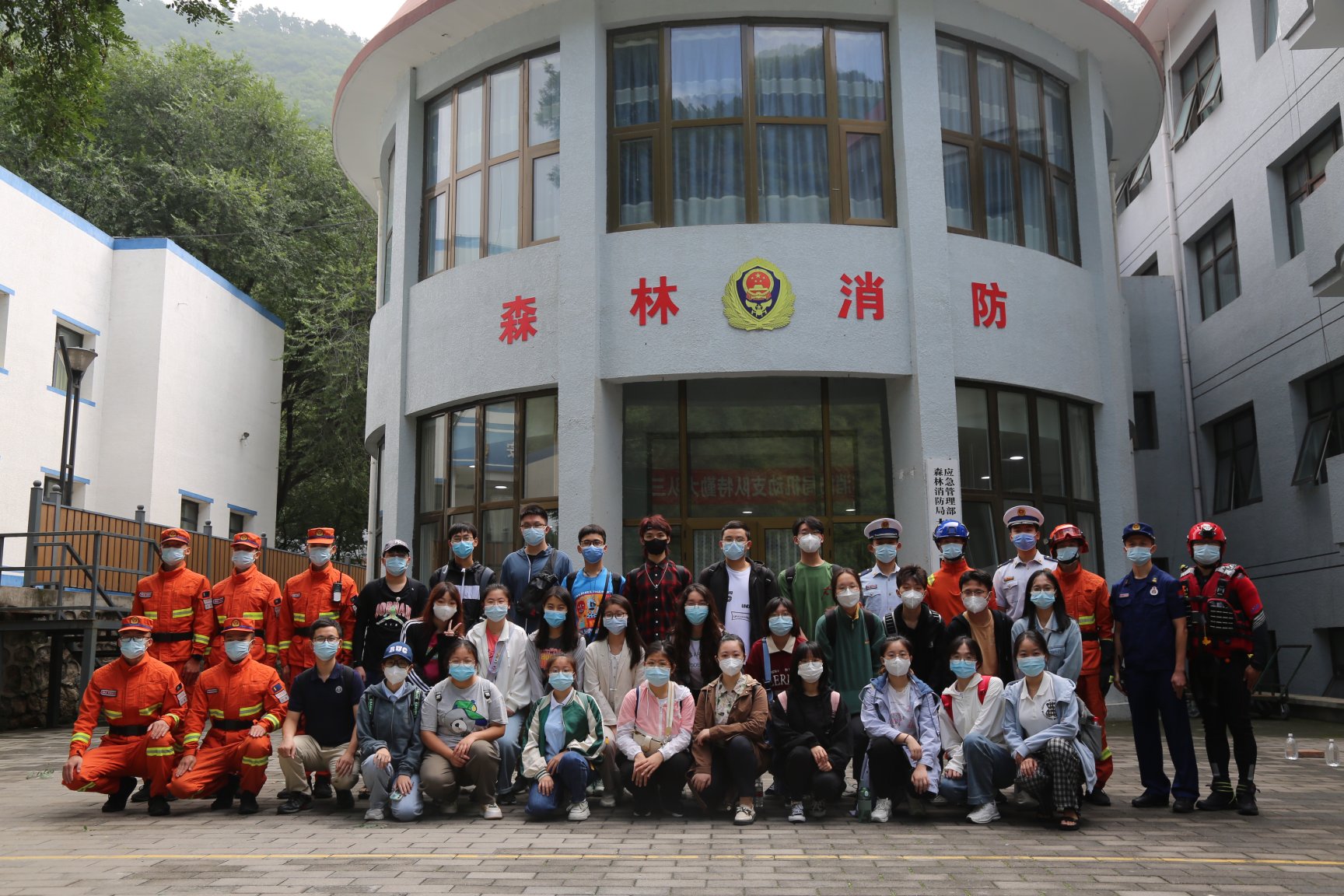 标本馆参观结束后,实践团队来到了北京松山国家级自然保护区消防大队所在地。消防队员们详细地为全体成员介绍各类消防装备,从灭火器到救援绳栓,从救援头盔到救生服,师生们对森林防火的艰难与辛苦有了更深一步的了解。