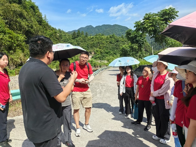 何科长在龙门坳生物廊道前为调研团进行讲解