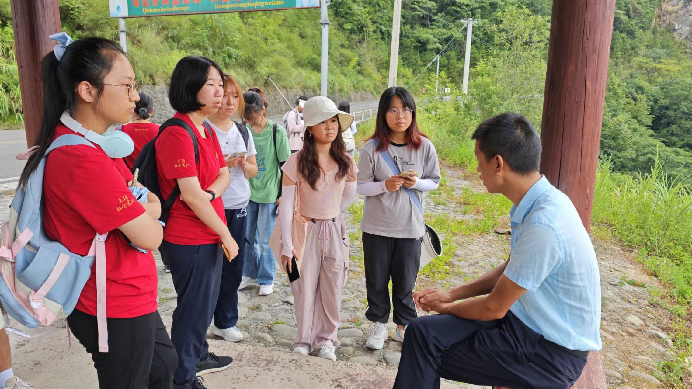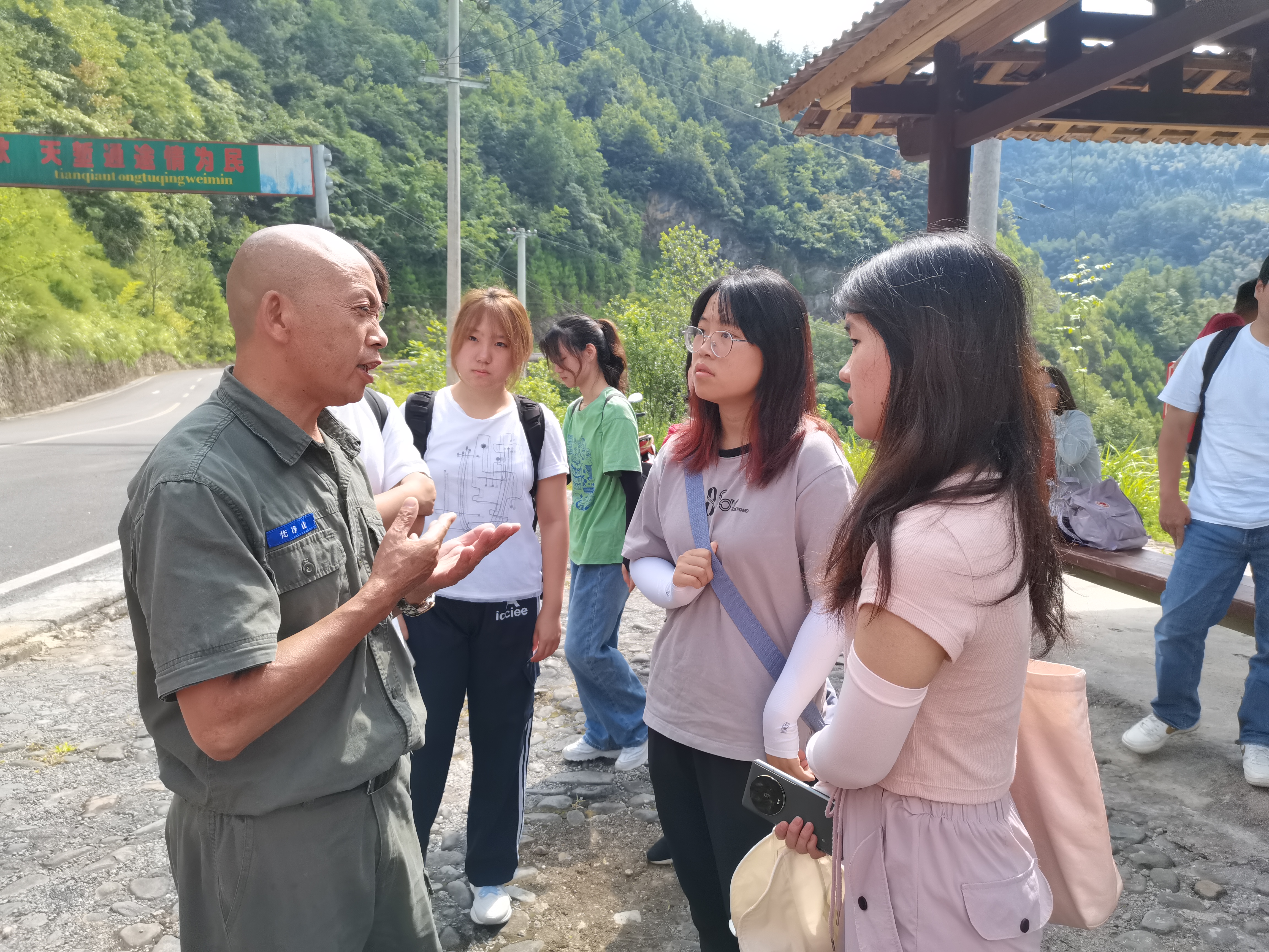 随后,调研团针对半坡台村的易地搬迁情况展开访谈。罗支书向同学们介绍了搬迁政策、实施过程和成果。政策实施以来,已有200余户村民搬离核心区。国家赎买林地及安置区的建立,不仅帮助群众“搬穷窝”“拔穷根”“换穷业”,也给予梵净山生态恢复的活力。目前,当地仍有少部分村民因未达到搬迁标准或不愿搬离而留在实验区,只能依靠补贴生活,森林保护政策与生计维持产生了矛盾,引发同学们对生态保护与居民生活的深入思考。半坡台村之行让同学们了解到易地扶贫搬迁的真实情况,也深深感受到梵净山保护的艰苦与不易。半坡台村的故事是生态文明建设与精准扶贫政策在中国大地上开花结果的缩影,我们期待在更多这样的地方,人与自然能更加和谐共生,绿色发展之路能够越走越宽广。