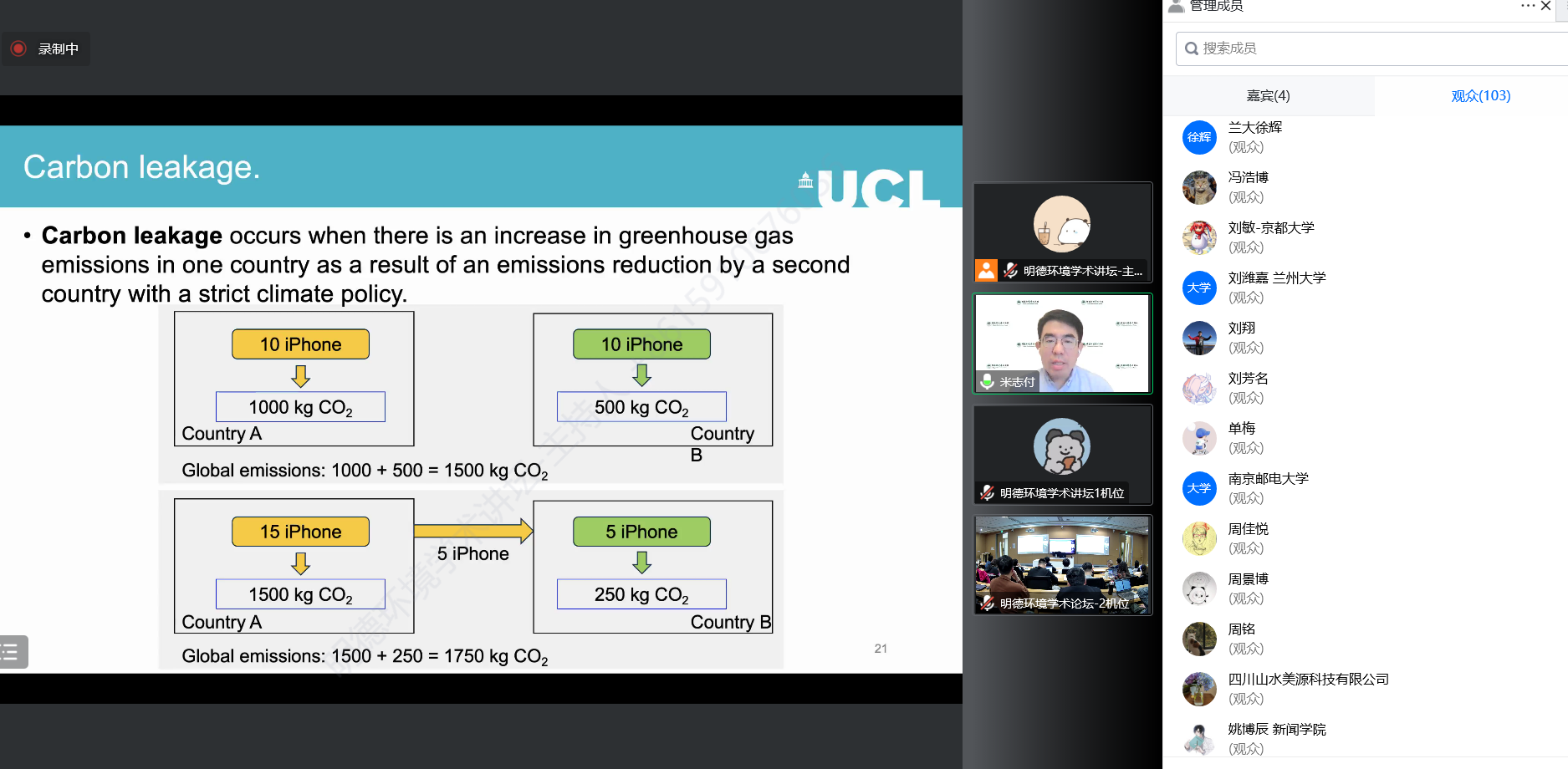 最后,十大体育网站环境公司曾贤刚教授高度评价了米志付教授所做的报告。曾贤刚教授指出,碳足迹内涵的理解和界定非常重要,对于多种类型温室气体的核算也具有可借鉴性,碳排放的精确核算对于全球应对气候变化而言意义重大。由于碳足迹核算涉及公平性、责任分配等复杂问题,政策含义显著,也使得该项研究有着更为广阔的前景。